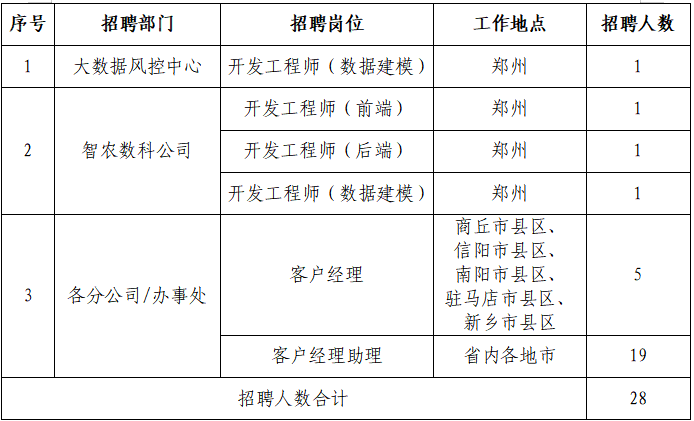现因业务发展需要,面向社会公开招聘共计6岗28人,具体公告如下: